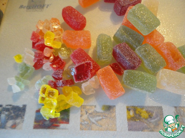 Ну, мы отошли от темы. Мармелад режем мелкими кубиками.
