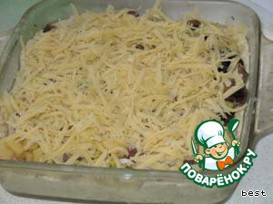 Теперь выкладываем начинку на наш раскатанный лист теста, который выложен в форму.