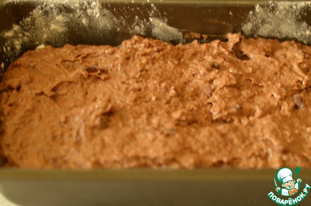 6. Форму, у меня прямоугольная для кекса, смазать маслом. присыпать мукой, выложить тесто.