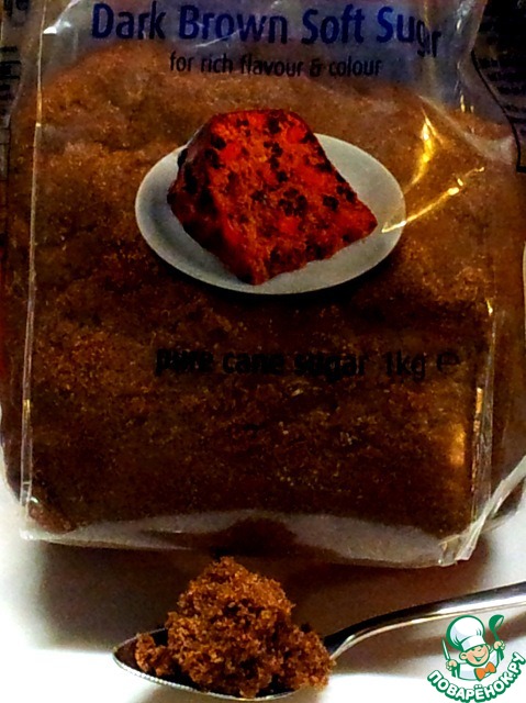 Сахар тёмно-коричневый для выпечки. Положила только одну ложечку, так как запах сахара специфический.