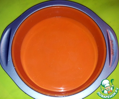 В миксер насыпала муку, сахар, соду. Налила кислоту, масло, сироп из компота и на пять минут включила миксер. Тесто перелила в силиконовую форму диаметром 22 см.