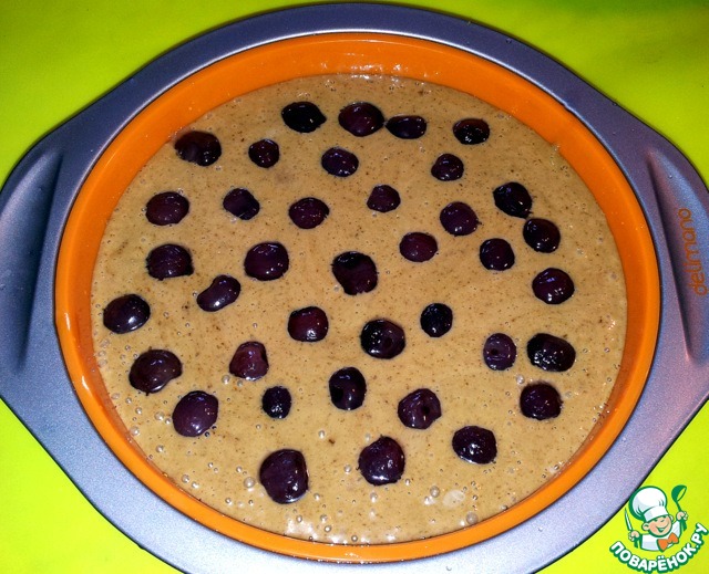 В перевёрнутом виде почти все вишни оказались наверху, так как тесто было жидким.