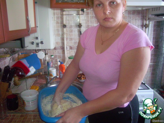 Тесто я всегда делаю сама. Нагреваю молоко, растворяю в нем дрожжи. Потом добавляю все остальные ингредиенты. Муки всегда беру столько, сколько возьмет тесто. Замешиваю до тех пор,пока не начнет отставать от рук. Главное-не переборщить с мукой, и не забить тесто. Ставлю подходить тесто на теплое место. Подходить будет около 1,5-2 часов.