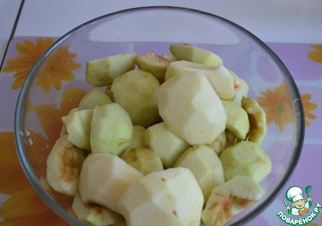 Яблоки очистить и порезать на 4 части (в оригинале крупно, как только возможно)
