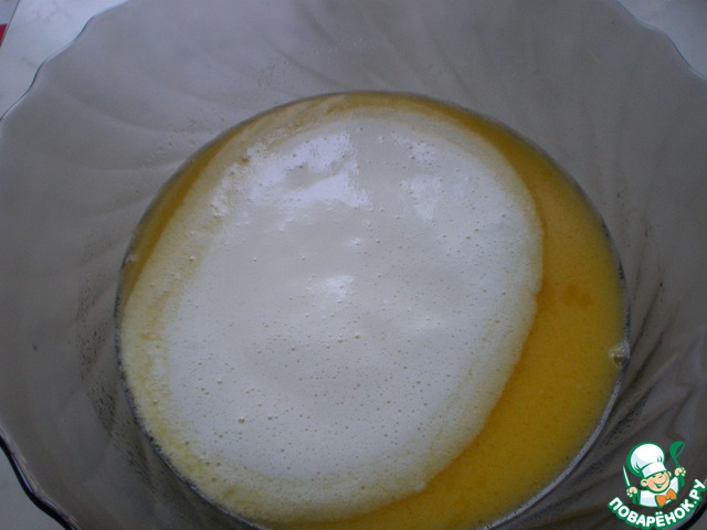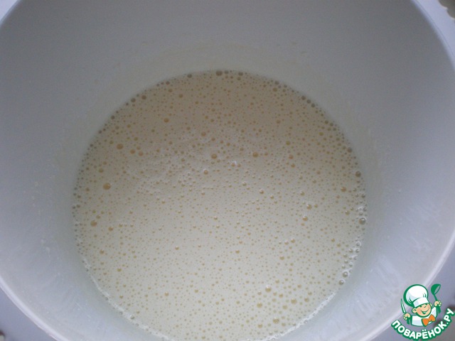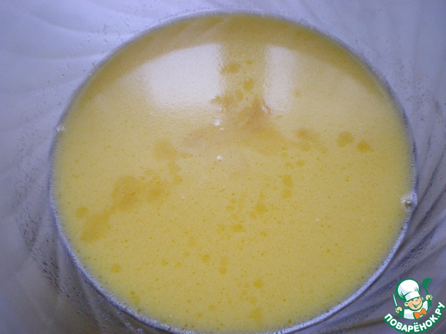 В молоко, помешивая, ввести яйца и взбивать 2 минуты.