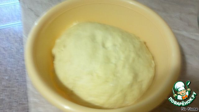 Замесить тесто: кефир, растопленный маргарин, майонез(жирный), разрыхлитель, соль, муку (столько, чтоб получилось мягкое эластичное тесто) смешать.