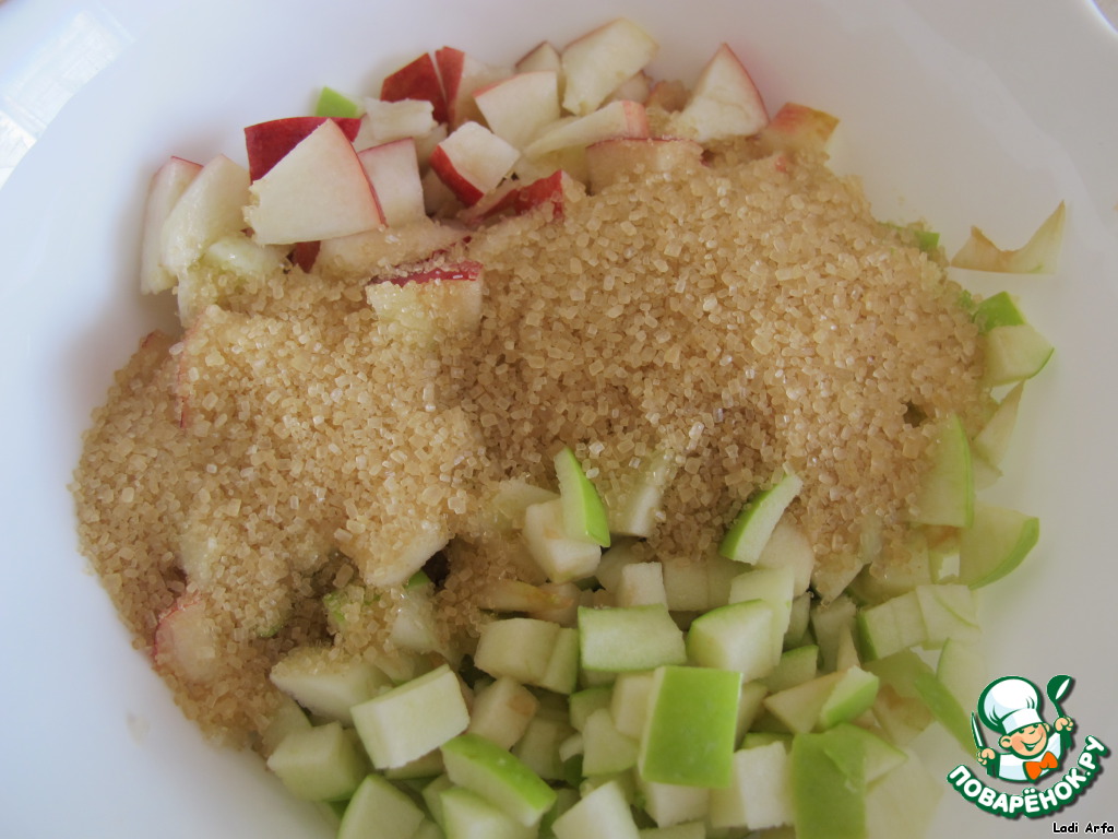 За 20 минут до расстойки пирога всыпаем к фруктам 1 ст.л. крахмала.