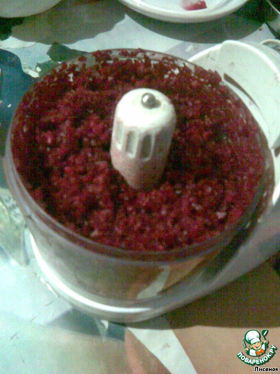 Свеклу почистить и натереть на мелкой терке или измельчить в процессоре.