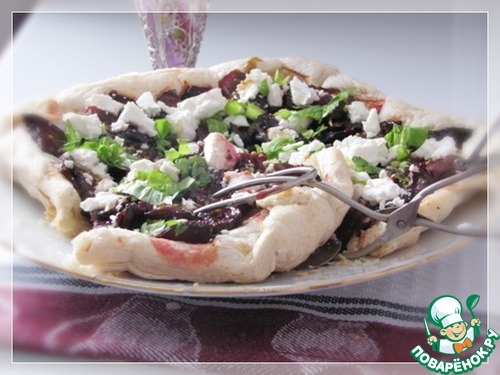 Хорошим дополнением к тарту будет мелкопорезанная фета. Она замечательно контрастирует и дополняет кисло-сладкий вкус начинки.