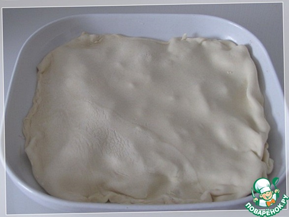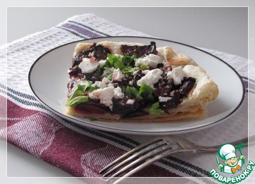 Квадрат слоеного теста раскатайте. Накройте тестом запеченную свеклу. Выпекайте в духовке при температуре 180 градусов 20-25 минут.