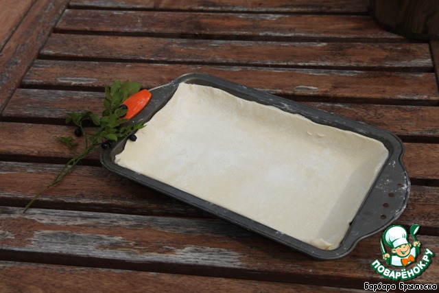 Через полчаса тесто выложить в смазанную маслом форму и раскатать его, по всей форме. Четверть теста отложить, чтобы сделать "решетку".
