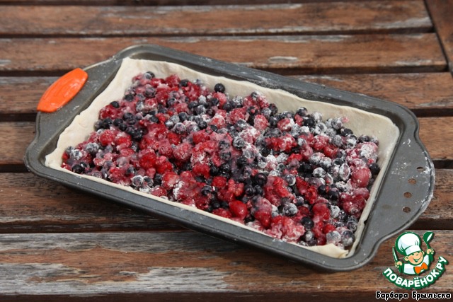 На тесто выложить ягоды, равномерно распределив по поверхности.