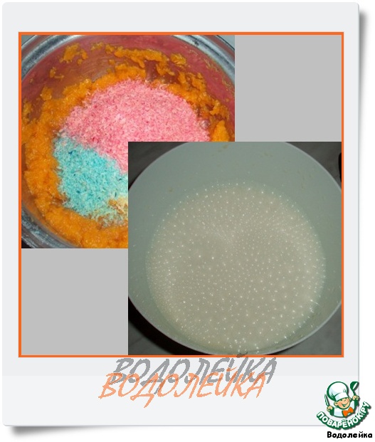 Добавляем к тыквенному пюре кокосовую стружку (у меня была цветная; немного оставить для украшения верха пирога).