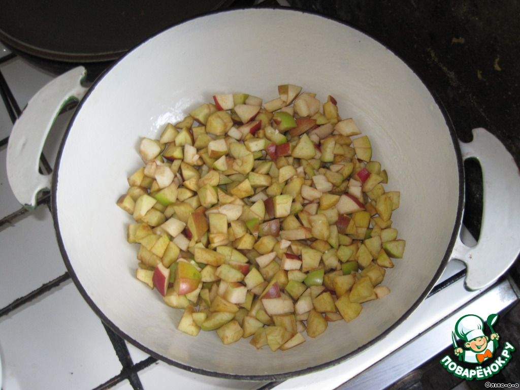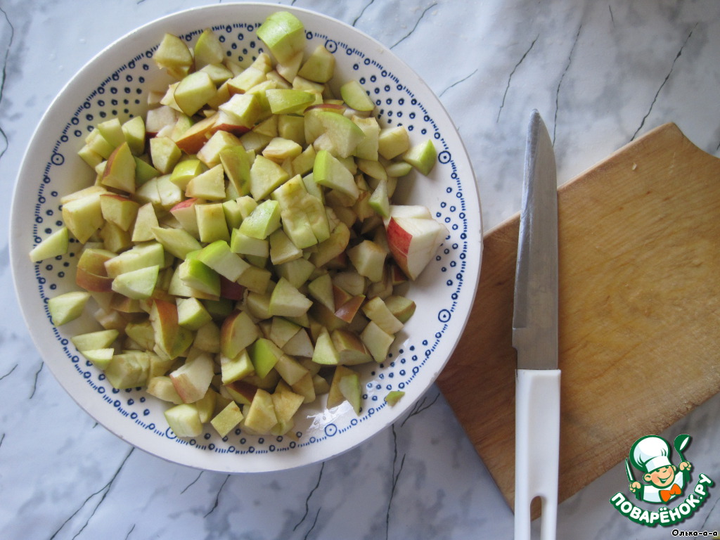 Яблоки очистить от сердцевины и нарезать мелкими кубиками (должна получиться полная глубокая тарелка).