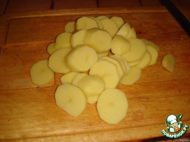 3. Картофель порезать ломтиками и отварить почти до готовности.