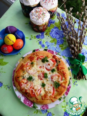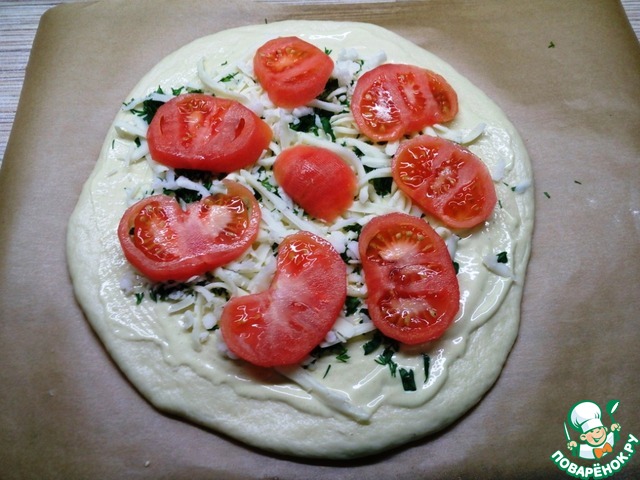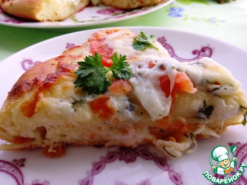 | Пирог навеянный пиццей "Маргарита", на сдобном дрожжевом тесте. Получается мягкий, ароматный, очень сырный и вкусный! |
