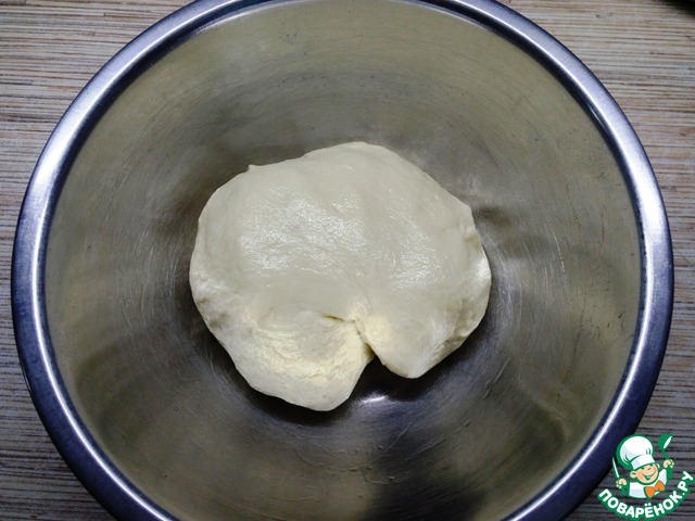 Постепенно всыпая муку замесить тесто. Муки может уйти чуть больше. Переложить тесто в смазанную маслом чашу, накрыть полотенцем или пленкой и оставить в теплом месте подниматься в 2 раза.