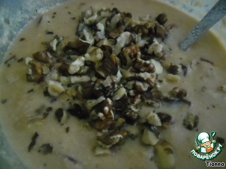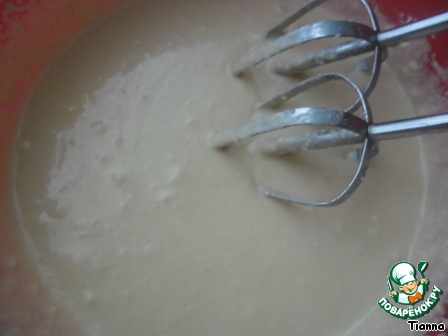 К взбитым яйцам добавить творог и карамель. (Если творог с крупинками, следует измельчить его блендером). Еще раз взбить массу.
