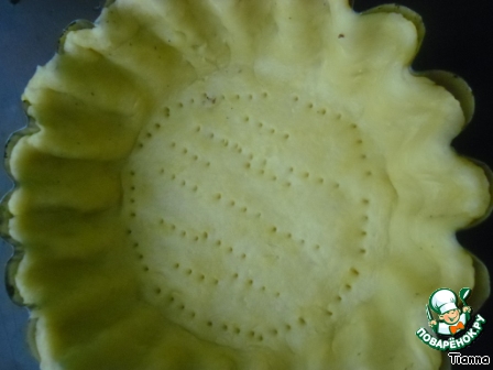 Тесто распределить по форме, наколоть вилкой и поставить в разогретую до 180 С духовку на 15 минут.