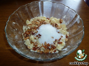 Добавить к смеси муки и масла измельченные орехи (я люблю, чтобы орехи ощущались, поэтому измельчением не увлекаюсь).