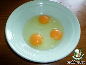 Пока тесто в морозилке – займемся начинкой. Три яйца разбить в миску.