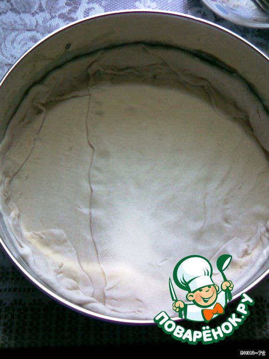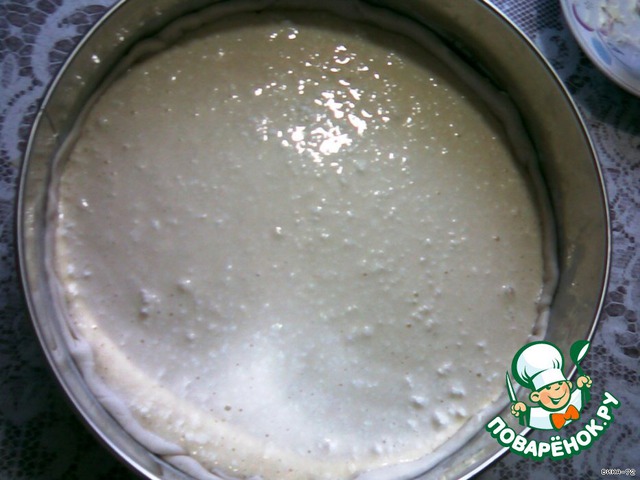 тесто слегка раскатываем, выкладываем в смазанную маслом форму