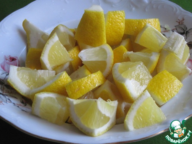 Измельчаем в блендере нарезанный лимон, добавляем к нему сахар, перемешиваем. В последний момент добавляем крахмал.