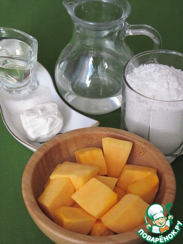 Приготовим продукты для теста. Тыква, вода, масло растительное, сахар, дрожжи.