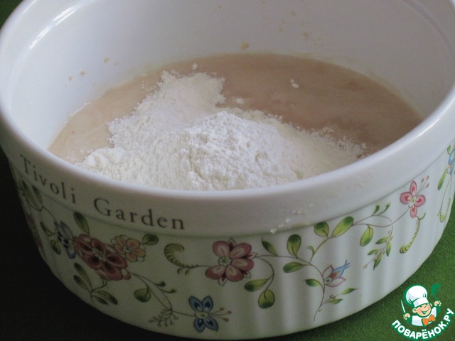 Дрожжи разотрем с сахаром и поставим на 4 минуты в теплое место.