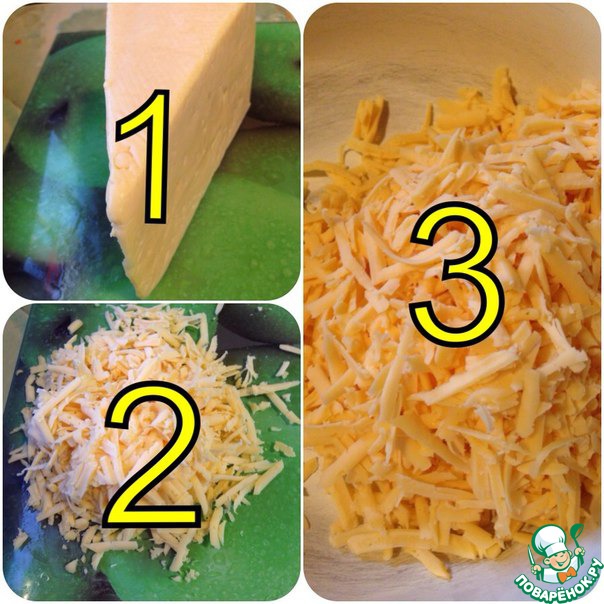 Натираем сыр и делим на две части