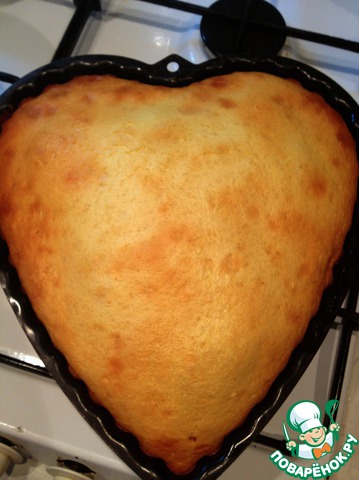 И все же... готовый пирог сразу же перевернуть на блюдо. Я еще посыпала по краю тертым шоколадом и украсила сердечками из растопленного шоколада. Теперь главное дождаться полного остывания и можно звать родных на чашечку чая!!! Приятного аппетита!!!