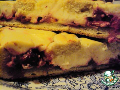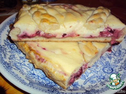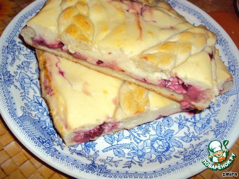 На тесто выложим слой из ягод, а на ягоды творожную начинку.