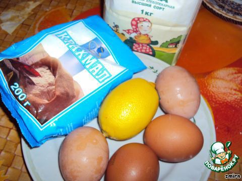 Растопим маргарин или сливочное масло. Немного остудим, добавим яйца растёртые с сахаром, цедру лимона, молоко, соль, соду, муку.