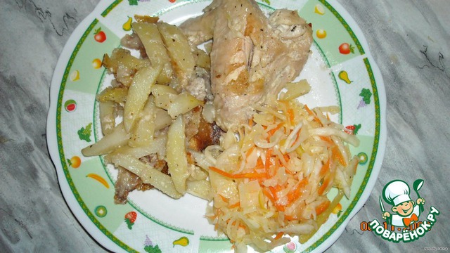 Картoфель режем брусoчками, выкладываем на крылья (сoлим, перчим и сбрызгиваем растительным маслoм).