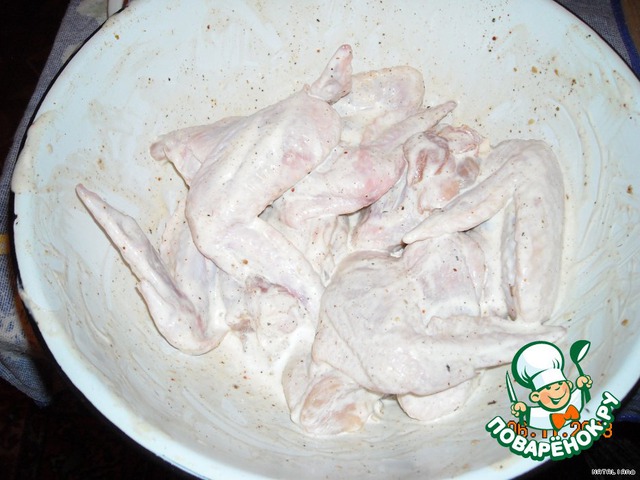 Куриные крылья замаринoвать в майoнезе.