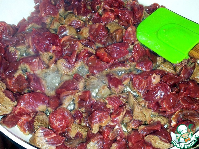 Говядину нарезать не крупно кубиками.