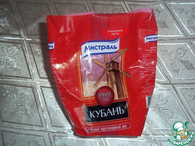 Из риса и молока варим густую кашу (рис должен хорошо развариться).