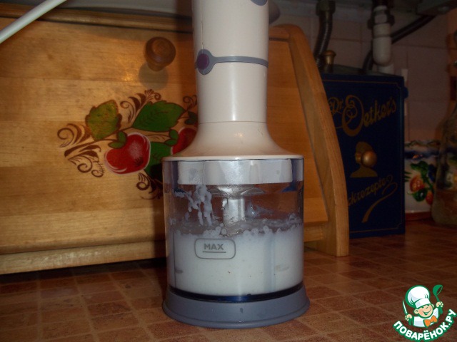 Рисовую кашу взбиваем в блендере, до получения однородной, кремообразной массы.