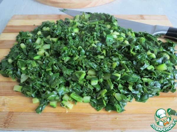 Перенести готовую зелень на разделочную доску и измельчить ножом.
