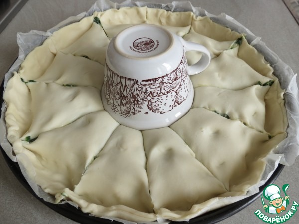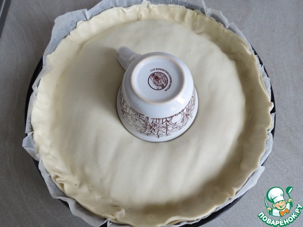 в центр пирога положить перевёрнутую чашку, слегка надавить сверху.