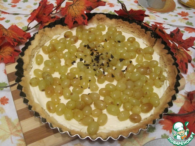 | На рассыпчатом тоненьком корже, приготовленном на основе майонеза Махеевъ, лежит воздушное творожное облачко в шапочке из "пьяного" винограда! Идею подсмотрела в кулинарном журнале за 2010 год. |