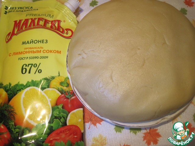 Добавляем майонез и ещё раз взбиваем. Яйцо в тесто не кладём, потому что в составе майонеза Махеевъ есть яичный желток.