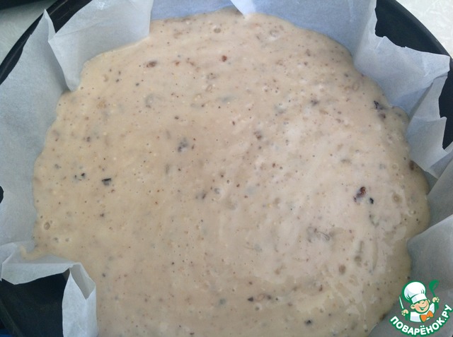В форму выстеленную пекарской бумагой выложить тесто и отправить в духовку на 30-40 мин при 180 гр