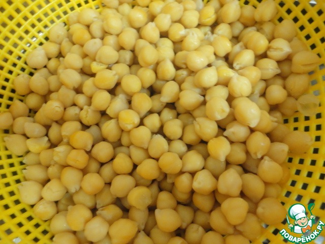 Отварить нут на медленном огне, в течении 50-60 мин. Промыть и дать стечь.