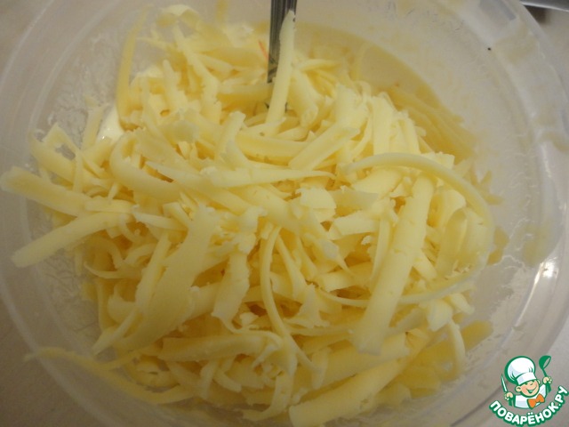 Любой твердый сыр натереть на крупной терке и добавить в креветочную массу, размешать. Вторая начинка готова.