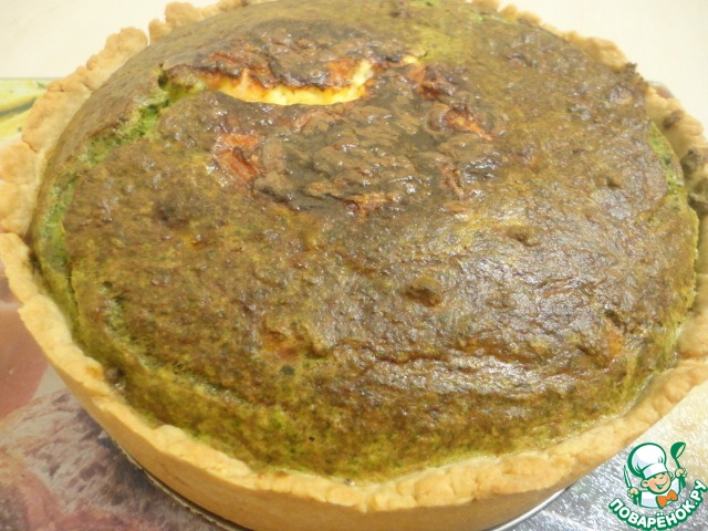 Когда заливной пирог весь покроется коричневой корочкой, он почти готов. Обязательно проверьте его предварительно, на ощупь он должен быть как бисквит.