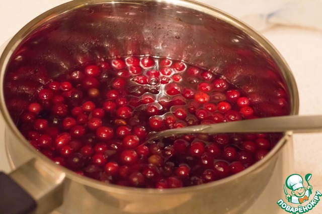 1 ст. л. джема залить стаканом кипятка. В кастрюльку или ковш выложить ягодное ассорти, засыпать сахаром и вылить залитый водой джем. Поставить на небольшой огонь. Ягода должна закипеть. Отключить огонь и добавить замоченный желатин. Перемешивать, пока желатин не растворится, поставить охлаждаться до комнатной температуры. (Для этого я в не большую миску набрала холодной воды и внутрь поставила ковш.)