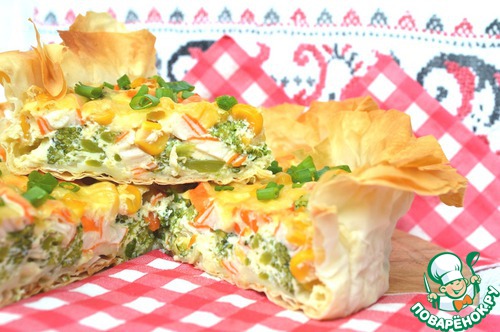 | Киш - прекрасный вариант несложной выпечки для перекуса, на завтрак, просто к чаю или к приходу гостей. Минимум времени и максимум результата. Такой пирожок порадует вас в холодный осенний день своим ароматом и нежным вкусом. Я давно заметила, что крабовые палочки отлично подходят для горячих блюд, предлагаю вам свой вариант этого популярного французского блюда. |