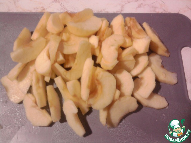 Яблоки вымыть, высушить, очистить от кожуры и семян, нарезать на дольки.