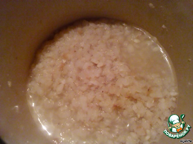 Рис заливаем кипятком 1:1, солим, перемешиваем.